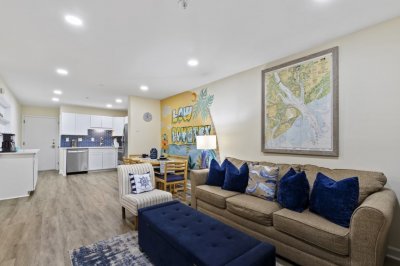 Welcome to your extra-clean, spacious beach retreat! This 2-bedroom, 2-bath condo plus bunk room is perfectly situated on the 3rd floor — high enough for a beautiful lake view, but low enough for easy access. And yes… you’re right across from Pineapple Willy’s! Inside, you’ll enjoy new memory-foam mattresses, a fully stocked kitchen, and plenty of room to relax between beach days and pool time.