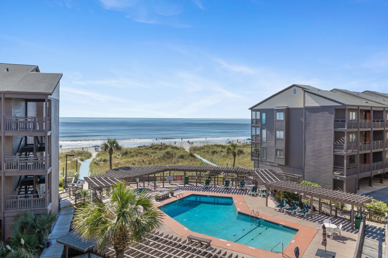 This coastal retreat offers 2 comfortable bedrooms — a king-size bed in the primary suite, a queen bed in the guest room, and a queen sleeper sofa in the living area — providing plenty of space for everyone. Enjoy the convenience of a fully equipped kitchen, in-unit washer and dryer, and free WiFi, plus multiple TVs throughout, including a Fire Stick in the second bedroom for easy streaming. Resort-style amenities include an indoor heated pool, seasonal outdoor pool and hot tub, and gas and charcoal grills in the courtyard. Best of all, you’re just steps from the beach and minutes from great restaurants, shopping, entertainment, and local attractions — the perfect location for your next getaway!