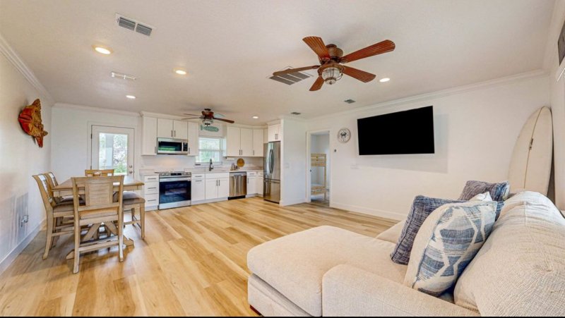 This spacious 3-bedroom home features king-sized beds in the master and one guest room, while the middle room offers two sets of double-over-double bunk beds—perfect for families. Each room has a flat-screen TV, and the unit includes wireless internet and a full-sized washer and dryer. The complex is fantastic, with easy access to both Orange Beach and Perdido Key, plus a friendly, helpful staff. Though we no longer rent during peak season to enjoy summer with our kids, we’ve loved welcoming snowbirds in recent years.
