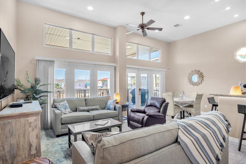 1538 sq ft of Beach Theme Condo Life Awaits you in this 3 bedroom 2.5 bath condo with outside patio located across Lake Padre and close to the beach. Awesome location makes it an amazing location to fish on the Packery Channel or take a trip out into the Gulf. Our condo sleeps a total of 10 with nice amenities throughout. Comfy furnishings and beach vibe.