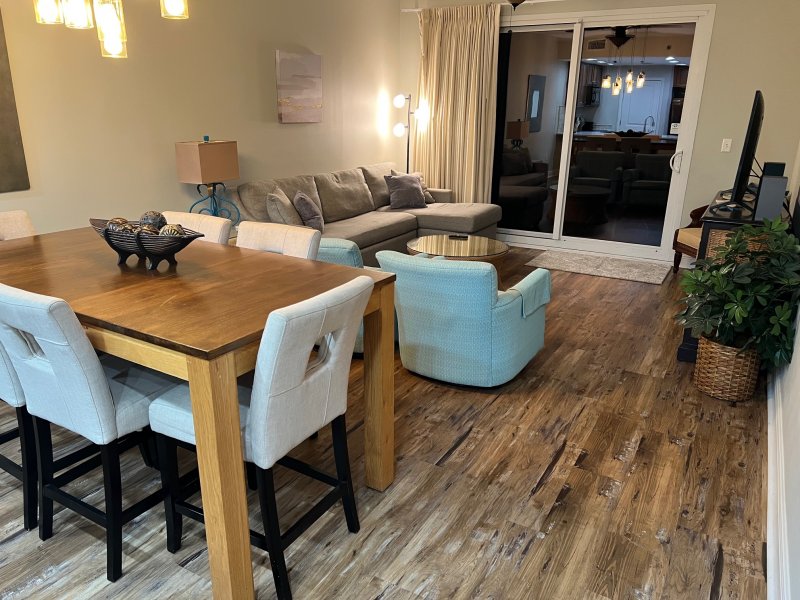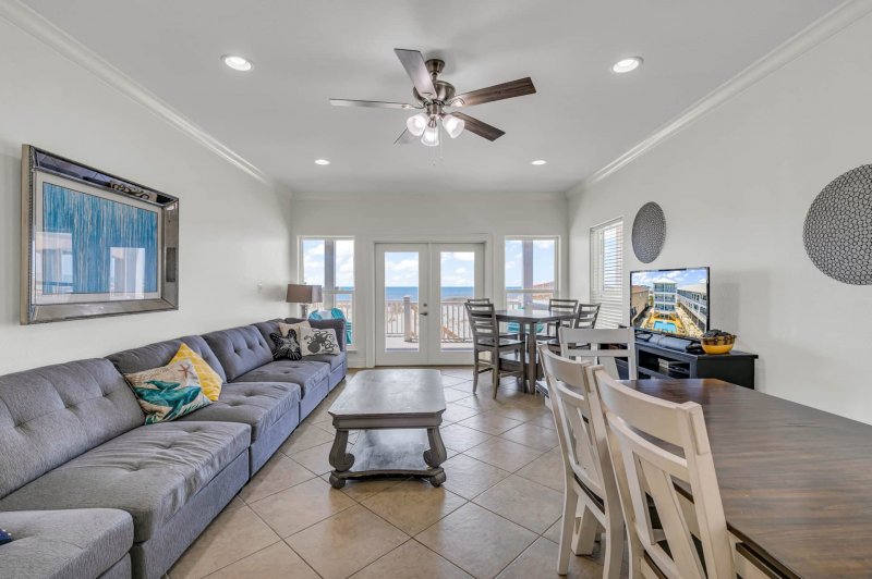 This unit is on the 5th floor on the east side of the building. Being on the corner of the building not only means you have more balcony space but also more of those stunning views!! This condo is very inviting, with great views of the pool, white sandy beaches, the Gulf, and the Pass! It features 3 spacious bedrooms and an open living room and dining area.