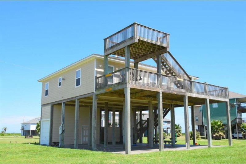 Sea Rock is the perfect beach retreat with a fully-enclosed private elevator, full kitchen, 3 beautifully-furnished bedrooms, 2 full bathrooms, W/D on-site, relaxing outdoor shower and 1-car detached garage. The community of Crystal Beach on the beautiful Bolivar Peninsula of the Texas Gulf coast, is a popular escape from traffic and crowds.