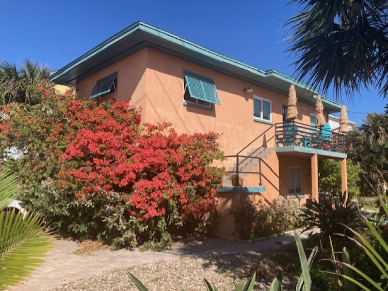 Escape to Beach Paradise Getaway, a beautifully renovated 3-bedroom, 2-bath home featuring a large heated pool with screened enclosure and an inviting open-floor plan. Enjoy modern stainless steel appliances, comfortable furnishings, and relaxing outdoor spaces including multiple decks and a lanai perfect for dining and unwinding. The primary bedroom boasts a king bed with private lanai access and en suite bath with walk-in shower. Additional bedrooms include another king and two twins, each with pool-view decks. Entertainment awaits in the lower-level game room with foosball and a cozy indoor bar. Just steps away, access the bay’s small fishing pier and tiki hut, plus a deeded beach access is only a 5-minute walk. Conveniently located near Fort Myers Beach’s shops, restaurants, parks, and more, this home offers the perfect blend of relaxation and adventure.