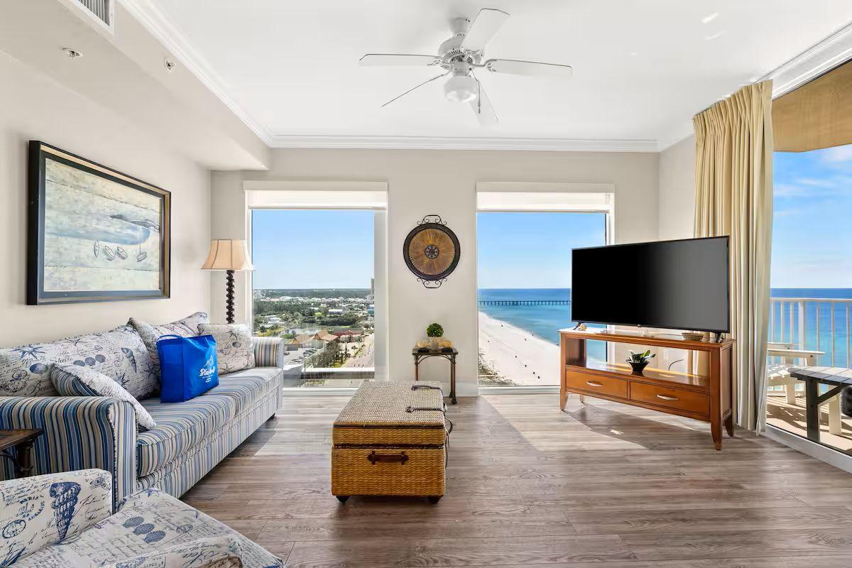 Sterling Breeze is a relatively small beach front, upscale resort on the west end of Panama City Beach. Only 143 units compared to others with hundreds of units. This means easier access to elevators, pool, and all the amenities. Walk to Frank Brown Park, and Pier Park!! Nothing but the beautiful pool and hot tub between you and the sugary sands of the beach. Located on the 14th floor with an awesome view of the beach and ocean from the balcony as well as the unit.