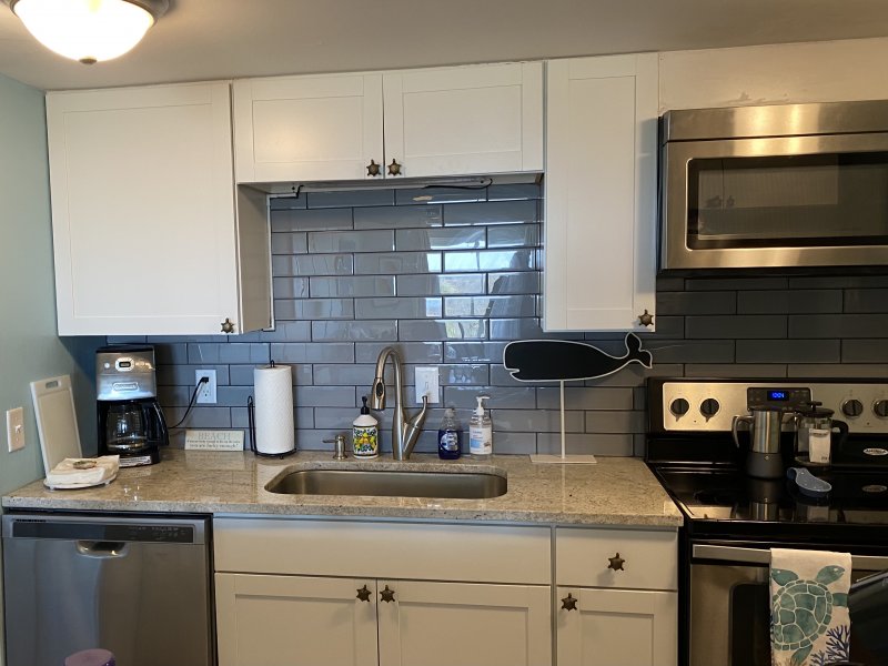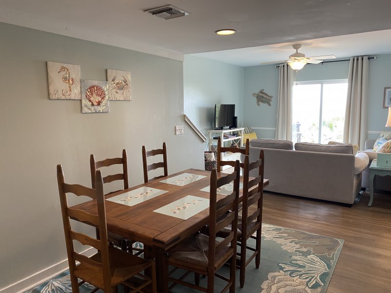 Recently redecorated. The lower level has a full kitchen, dining area, living room with slider to patio and a full size washer and dryer. Couch is a queen sleeper sofa with new mattress. 2nd floor has a master bedroom with a king size bed and en suite bath. The guest bedroom has 2 beds 1 queen and 1 twin. There is an additional full bath off the hallway.