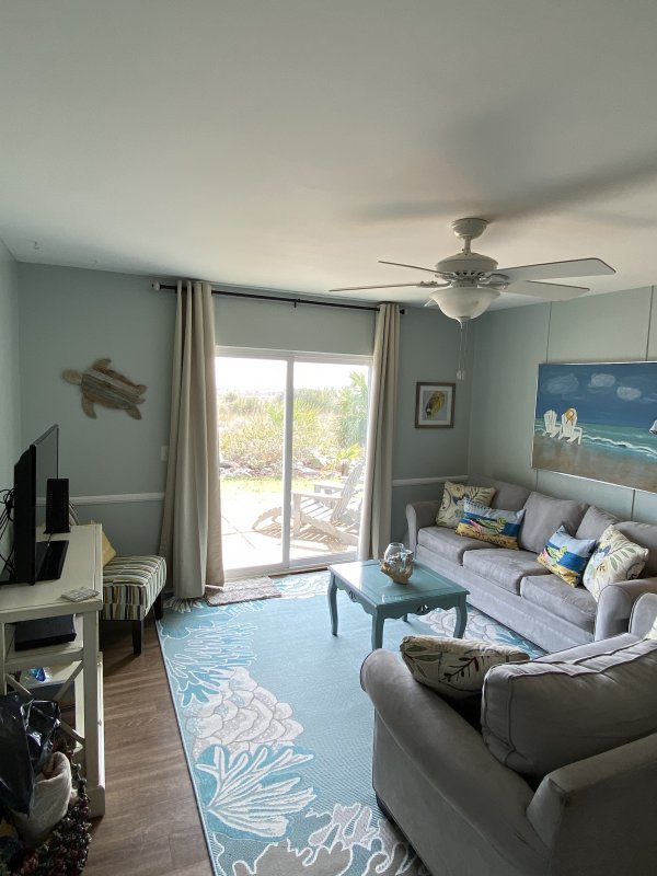 Oceanfront 2 story villa. Short walkway thru marsh to beach. Private pool for small complex. 2 full 2nd Fl baths.