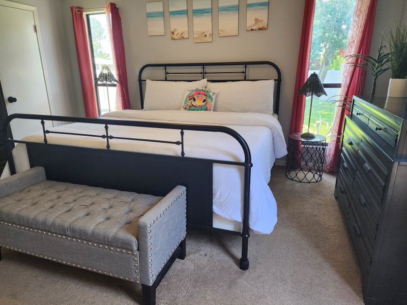 Only 8 blocks from the Atlantic Ocean, this bright and airy 3BR/2BA Jacksonville Beach home is your all-in-one beach retreat! Space highlights: • Fully equipped kitchen with Keurig, toaster, microwave, dishwasher • Three cozy bedrooms with Smart TVs • Two full baths (en suite in the owner’s suite) • Garage cave stocked with games, mini-fridge, and Bluetooth speaker-lights • Gigabit-speed WiFi throughout • Beach & outdoor fun: • Beach wagon loaded with chairs, boogie boards, and towels • Three bikes with locks for exploring Jax Beach • Fenced backyard with patio seating & firepit (firewood not included) Location perks: • 15-minute stroll to sun-kissed sand • Steps from South Beach Park & Sunshine Playground, local restaurants, shops, breweries, and the Jax Beach Pier • Short drive to Downtown Jacksonville events, concerts & The Players Championship Perfect for families, friends, and small dogs (up to 30 lbs). Pack your swimsuit and sunscreen—book now for sun-soaked days and starlit nights at Turtle Hut!