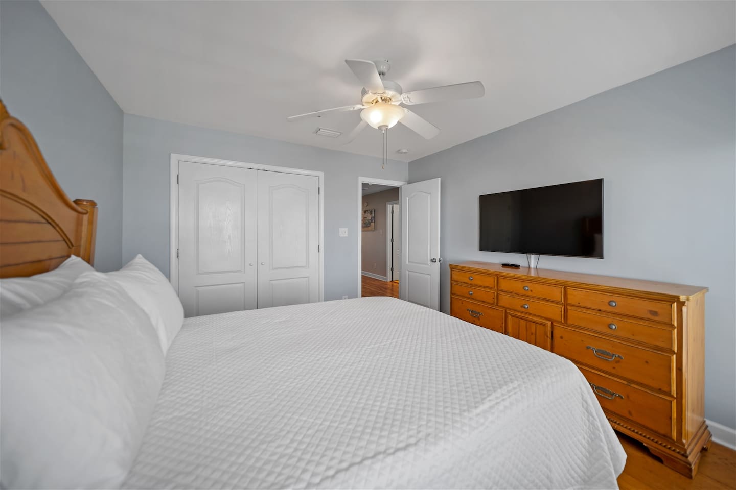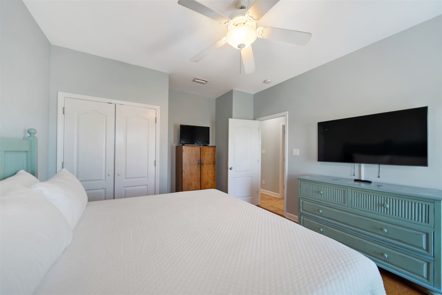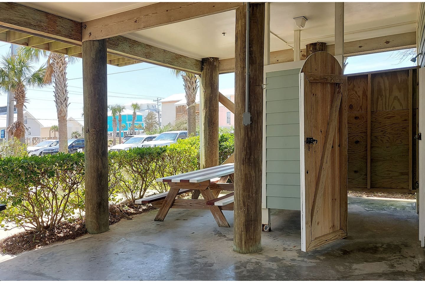 Outside, the good times keep rolling with a covered patio that includes a charcoal grill and picnic table for outdoor feasts, an outdoor shower to rinse off sandy toes, and a storage closet packed with beach toys and umbrellas for your use. Whether you're grilling up something delicious, lounging on the patio, or heading to the nearby community pool shared by just five houses, this spot makes it easy to savor every moment by the coast.