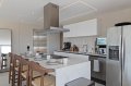 Modern kitchen with coffee maker, blender, toaster, air fryer, juice press